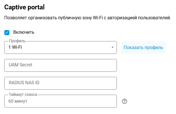 Выберbте профиль 1 Wi-Fi в Captive portal Netcraze Wi-Fi авторизация